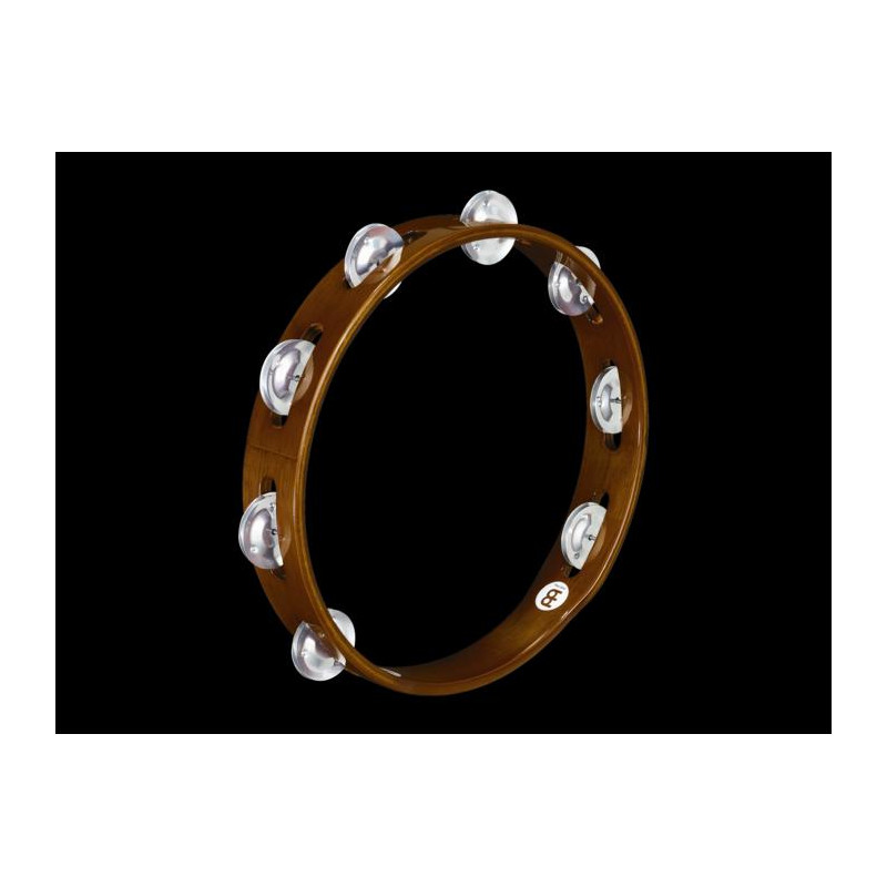 Ampliar PANDERO / PANDERETA Pandereta de 1 fila de sonajas de aluminio, madera africana en acabado marrón. La pandereta de mano meinl TA1A-AB en marrón está hecha de un marco de madera y tiene ocho pares de sonajas de aluminio.