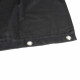Non-see-thru, black blackout cloth impregnated with fire retardant (B1 according to DIN 4102) and 300-g-quality, as curtain, backdrop or for decorative purposes. The fabrics have grommets at intervals of 25 centimetres along one side and are backed with an additional strip of webbing, permitting fast and secure installation both tightly stretched as well as loosely pleated. The grommets have a rustproof, burnished and a 20-millimetre hole diameter. The outer edges are hemmed, while the bottom edge is unhemmed, so that the material can be cut to the necessary length quickly and easily.