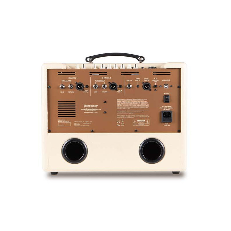 ACOUSTIC GUITAR AMPLIFIER The Sonnet 120 Blonde is the ideal on-the-go combo. This cream finish, light and compact amplifier with a power of 120W (1x8' + tweeter) is perfect for your acoustic concerts. Featuring mic and instrument inputs equipped with independent EQ and reverb, studio-quality effects: Hall and Plate, high-pass filter, brightness control, USB audio output, XLR DI mix output, MP3/line input, audio Bluetooth, footswitch input (FS-17) for mute and effects control. Tiltable bottom bracket.