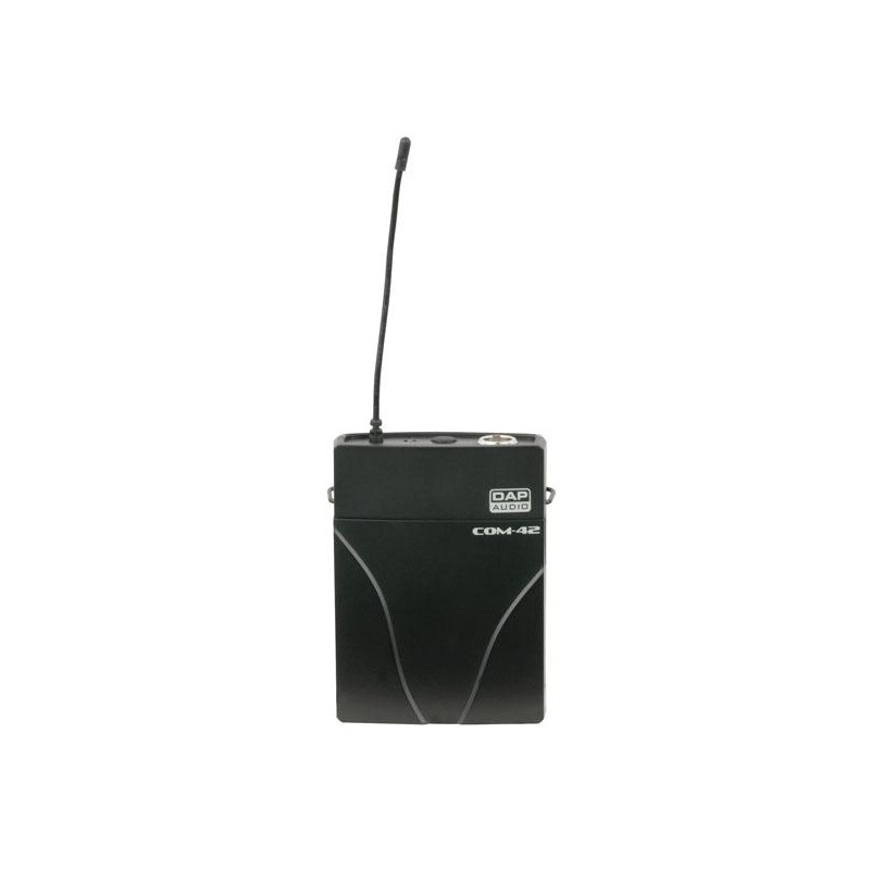 If you would need 2 wireless microphones, and have just one channel available on your inputs, the COM-42 is an ideal wireless microphone set for you. The wireless receiver has a balanced XLR output for each wireless transmitter, and also a unbalanced MIX output on a 6.3mm Jack plug. By using the volume buttons on the front of the receiver, it is easy to setup the desired balance between 2 transmitters. The COM-42 has 99 frequency presents which can easily be set by Infra-red synchronization technique. A clear LCD display shows the signal strength, audio level and carrier frequency of each channel. A COM-42 wireless microphone set contains a receiver and 2 metal handheld transmitters. Also it is possible to use an optional beldpack transmitter.