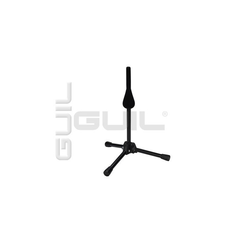 - Folding base. - Head of the support turned in wood and covered in black velvet to protect the instrument (Ø 19 mm). - Finished in textured black anti-scratch paint.