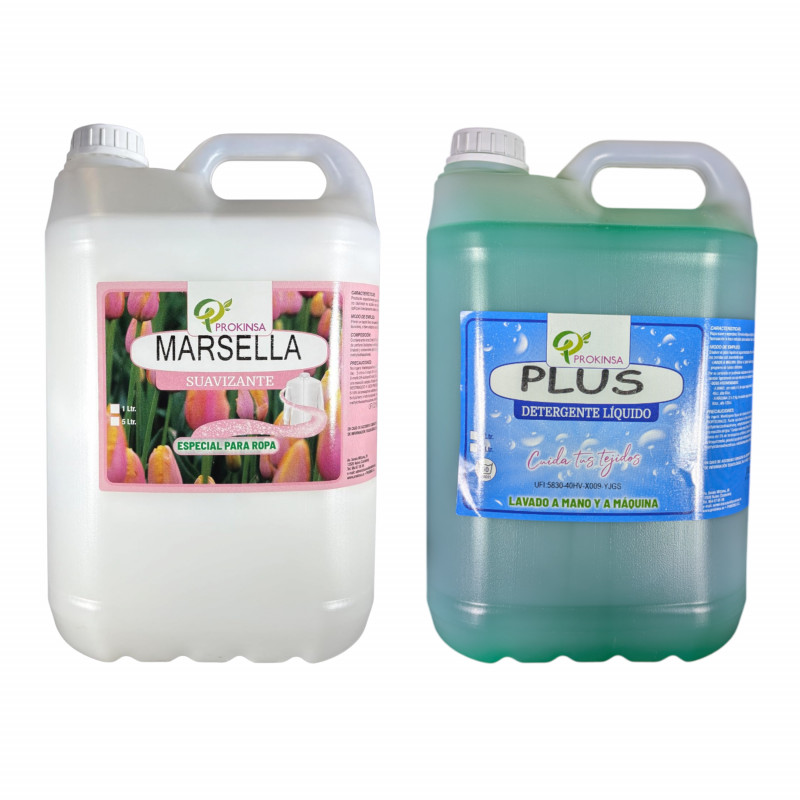 -Efficient pack for high consumption: Includes 5 liters of detergent and 5 liters of fabric softener, ideal for homes, laundries, hotels, restaurants and frequent use