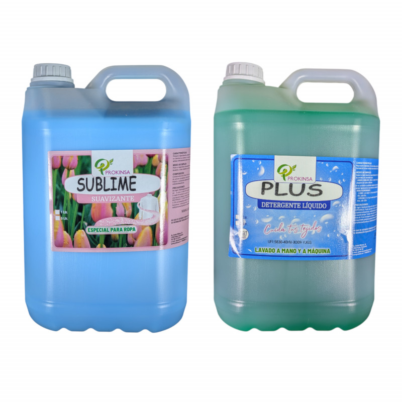 -Efficient pack for high consumption: Includes 5 liters of detergent and 5 liters of fabric softener, ideal for homes, laundries, hotels, restaurants and frequent use