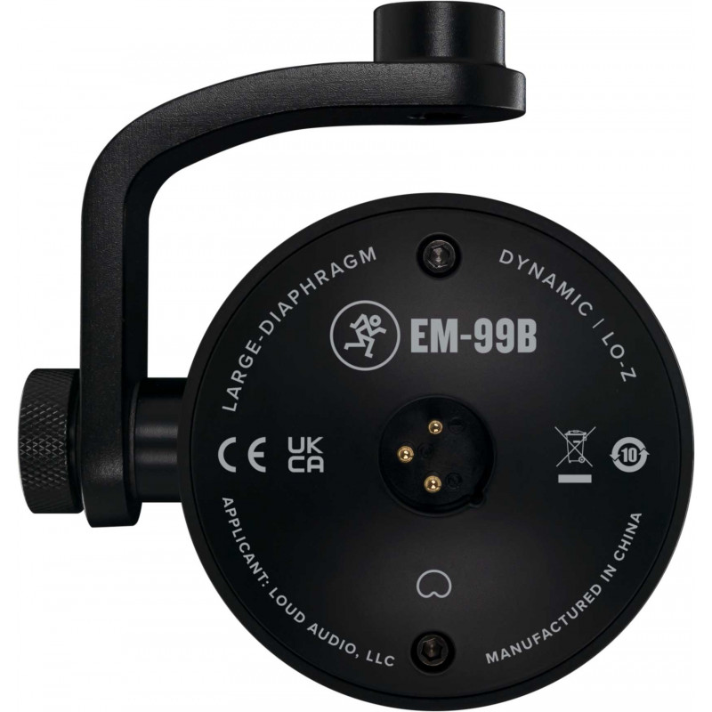 CONDENSER MICROPHONE Elevate your voice to the big leagues with the Mackie EM-99B dynamic broadcast microphone. This professional microphone is built to deliver perfect sound for podcasting, live streaming and dialogue recording. The high-sensitivity (-53dB) cardioid capsule with a specially tuned frequency response captures just the right amount of detail and warmth. Thanks to the single-axle suspension that reduces vibration noise, while an internal anti-popping filter reduces clicking. With an all-metal body, durable XLR connection, and sturdy stand, the Built-Like-a-Tank™ EM-99B is built to last. It even comes with a high-quality desktop stand, so you're ready to record right out of the box.