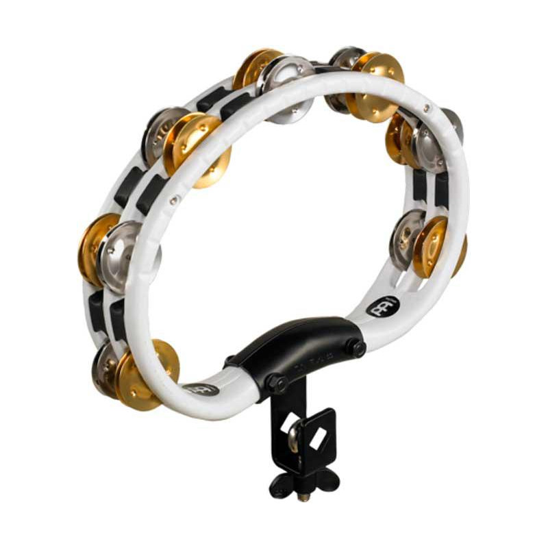 View larger PANDERO / PANDERETA Tambourine with plastic hook and brass and aluminum jingles - white. Special sound thanks to the combination of materials. Brass and nickel-plated silver claws.