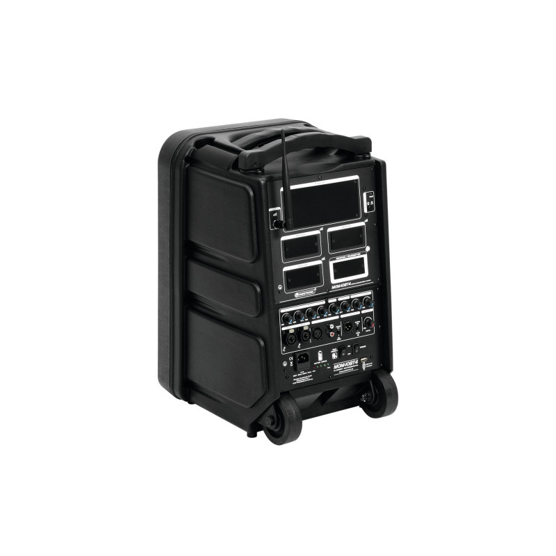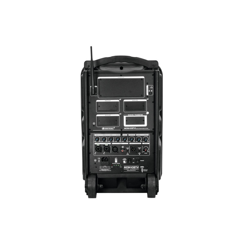 Wireless PA System for mobile useThe MOM-10BT4 is a mobile PA system in modular design. Thanks to its single components, which can be ordered individually, you can ideally adapt the system to your purpose of use. Decide for yourself whether you need additional radio microphones or an audio link module, for example. You can perfectly adapt and expand the 2-way system to your requirements.