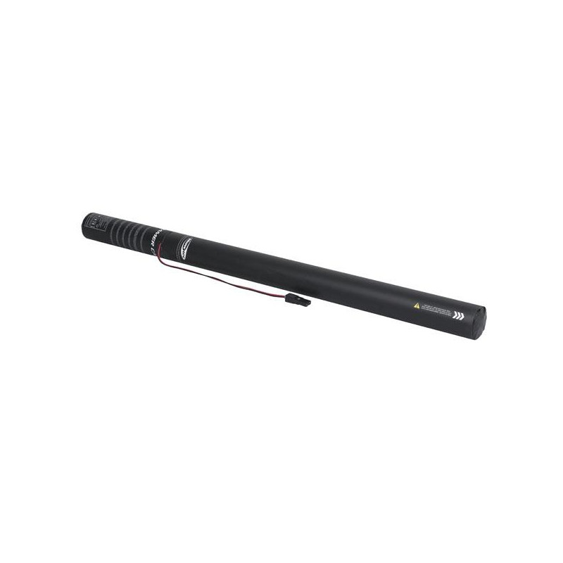The Showtec electric cannon is a single use cannon, prefilled with confetti or streamers. To fire an electric cannon, the Showtec FX Shot (60908) is required. The bottom part of the cannon contain a pressurized nitrogen cartridge for a powerful effect.