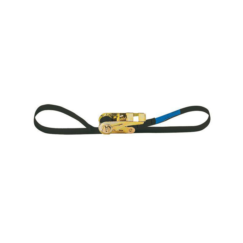 The lashings consist of high - tensile polyester (PES) webbing with an average tension of only 4% combined with a high quality push-ratchet. They come with the mandatory bluelabel, marked with length and admissible drag force. Manufactured in accordance with DIN60060/ VDI 2701, they are controlled by the Test-and Certification Authority (Technical Expert Committee) for traffic concerning quality and safety. Other types and lengths can be supplied anytime upon request on short notice.