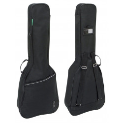 Black 4/4 size guitar case with zip and strap opening.